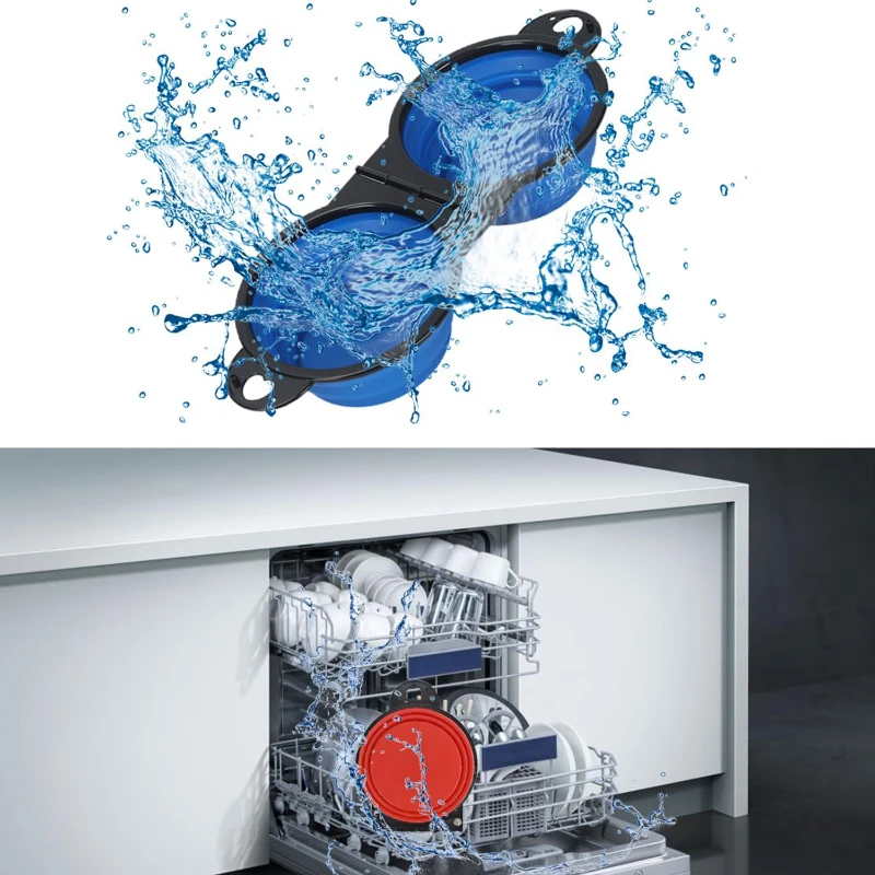 Silicone Collapsible Pet Bowl – a versatile solution for your furry friends! This two-bowl set keeps your pet’s food fresh and clean. What sets it apart is its foldable design, featuring a three-layer fold for portability and adjustable bowl capacity to accommodate pets of all appetites. Plus, the space-saving feature allows the bowls to fold into one, making it ultra-convenient for on-the-go pet care.