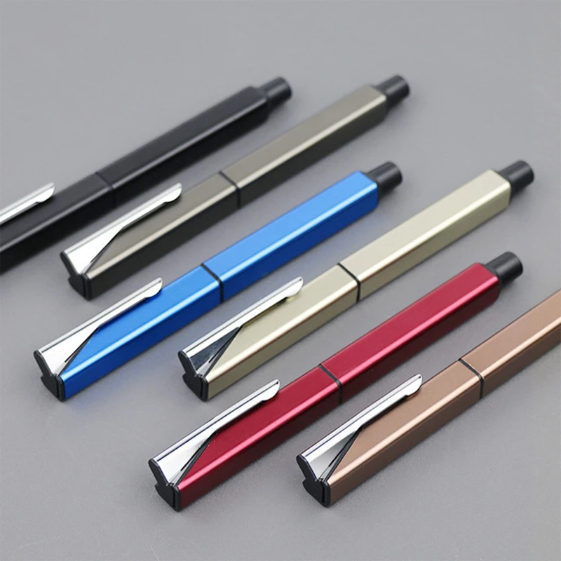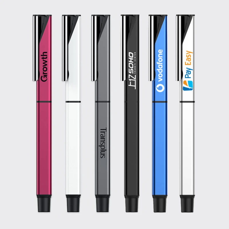 This square-profile business gel pen features a smooth 0.5mm black ink refill for clean, controlled writing. The aluminum barrel delivers a solid, premium feel with a refined matte-metal finish and sharp, modern lines. A contoured grip area supports comfortable handling during extended use, while the capped design adds a professional touch. Measuring approximately 5.51 inches in length, this pen is ideal for executive offices, meetings, and branded corporate use. Multiple barrel colors allow easy brand alignment and visual impact.