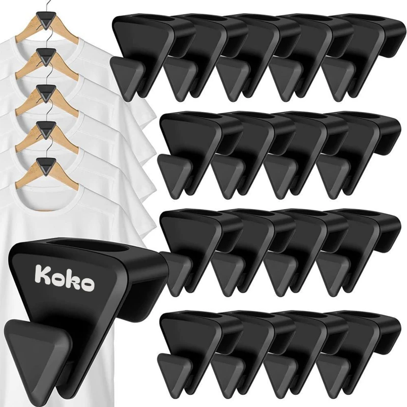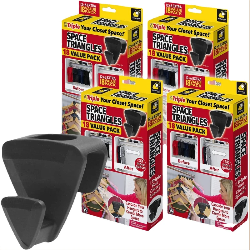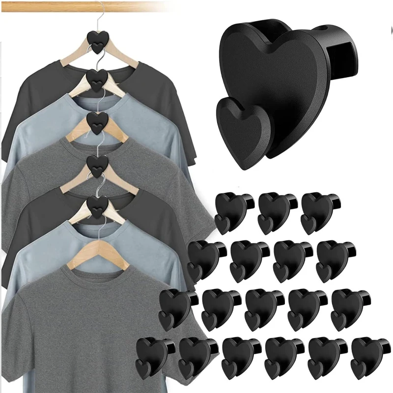 Offered in two stylish shapes : sleek triangles and charming hearts , these hooks are as fashionable as they are functional. Each pack contains 18 hooks that conveniently attach to any hanger, allowing for vertical cascading of clothing, which triples your closet capacity instantly. They are crafted to be compatible with a variety of hangers, from wire to wooden, ensuring a universal fit.The heart-shaped hooks add an extra touch of love to your wardrobe organization. These black hanger hooks are perfect for coordinating outfits, keeping accessories in line, and streamlining closets of any size. All of this convenience is neatly packed in a box.