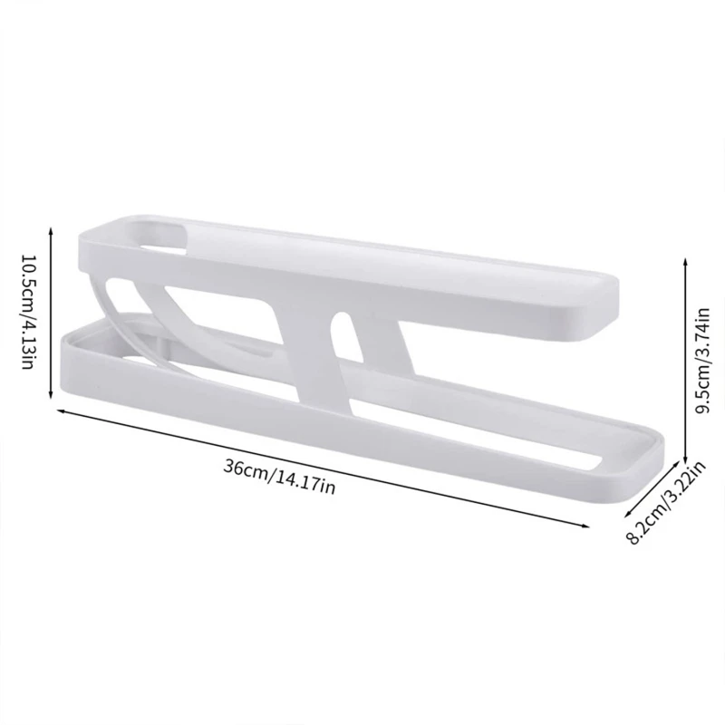 Engineered with a space-saving two-tier design to neatly hold and dispense eggs. Measuring 14.17 inches in length and 3.74 inches in height, this lightweight dispenser, weighing just 0.41 pounds, is crafted from durable plastic, ensuring longevity and ease of cleaning. Its automatic rolling design cleverly uses gravity to roll the eggs down as one is taken, ensuring the oldest eggs are used first, minimizing waste. The compact structure is perfect for refrigerator organization, fitting snugly without the need for assembly. Its straightforward and efficient operation makes it suitable for busy households, ensuring fresh eggs are always within reach.