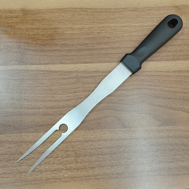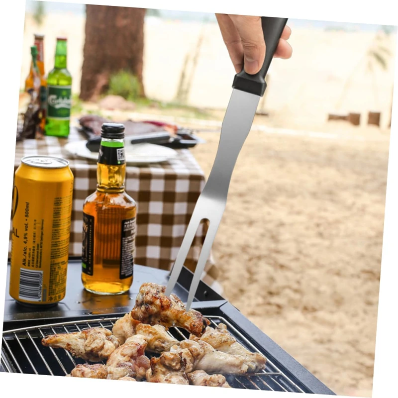 Constructed from high-quality stainless steel, this fork is perfect for handling large cuts of meat, such as steaks, chicken, and roasts. Its durable construction ensures long-lasting use, while the ergonomic black handle provides a comfortable and secure grip. The fork is ideal for both indoor kitchen use and outdoor barbecues, making it a versatile tool for any meat lover. Easy to clean and designed for practicality, this fork is an essential addition to your BBQ and kitchen arsenal.