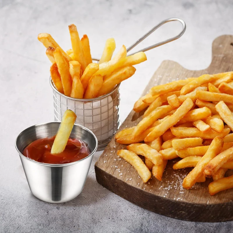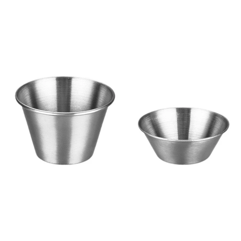 These Stainless Steel Sauce and Dip Cups are the perfect addition to any kitchen or dining setup. Available in various colors including silver, black, gold, rose gold, and gradient, these cups are both functional and stylish. Each cup measures 2.6 x 1.8 inches and weighs approximately 0.05 lbs (3 oz), offering ample space for sauces, dips, and condiments. Made from high-quality stainless steel, these cups are durable, easy to clean, and resistant to rust and stains. Ideal for both home use and professional settings, they add a touch of elegance to any meal presentation. These cups are stackable for convenient storage and are perfect for serving ketchup, mustard, BBQ sauce, and more.