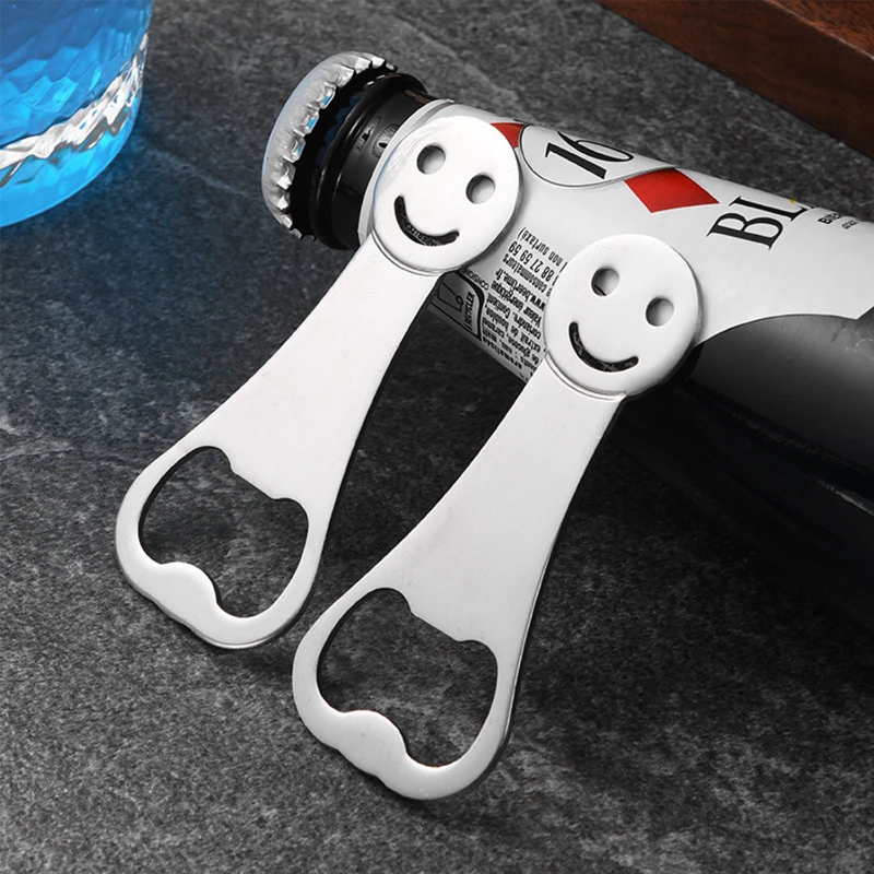 Crafted from high-quality 410 stainless steel, it is designed for durability and ease of use. Measuring approximately 3.14 inches in length, 1.38 inches in width, this bottle opener is compact yet efficient, and weighing just 0.04 pounds, it is lightweight and portable, making it perfect for home, restaurants, and bars. The smiley face design adds a cheerful element, making it a great gift or promotional item. Ideal for opening bottled beverages like beer, soda, and mixed drinks.