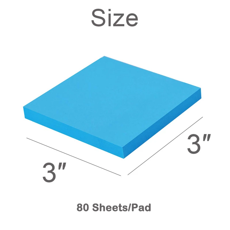 Each pad measures 3 x 3 inches and includes 80 sheets, perfect for jotting down quick reminders, messages, or to-do lists. Weighing just 0.09 pounds, these sticky notes are lightweight and easy to use. Features a rainbow of colors including pink, orange, yellow, green, blue, and purple, making them ideal for color-coding tasks and adding a pop of color to any setting. Suitable for office, school, or home use, they ensure your notes are always visible and easily accessible.