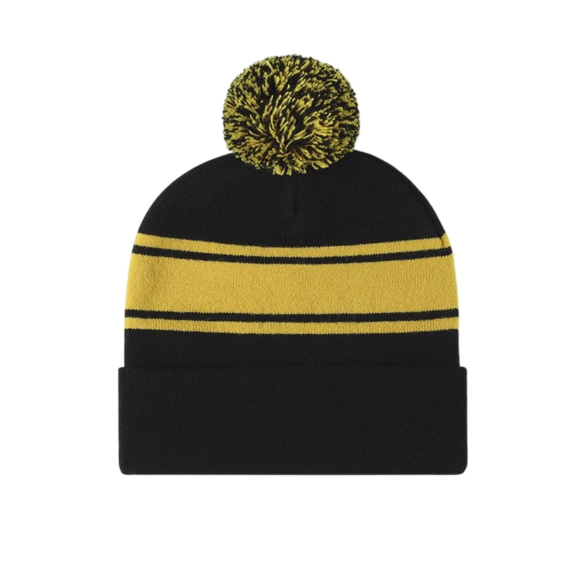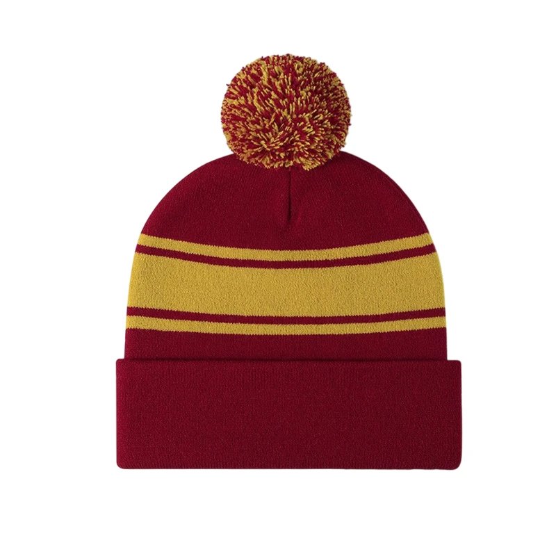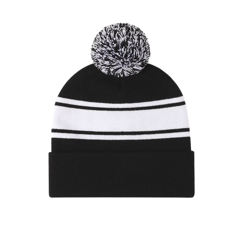 This striped knit pom beanie combines style and comfort for a cozy accessory in cold weather. Crafted from a premium blend of polyester and acrylic, it offers a soft, skin-friendly feel and excellent elasticity. The vibrant striped pattern and a colorful pom accent add a playful touch, making it a versatile choice for casual outings or outdoor activities. The folded brim ensures a snug fit and extra warmth. Perfect for gifting or personal use, this beanie is available in various color combinations to match any wardrobe.