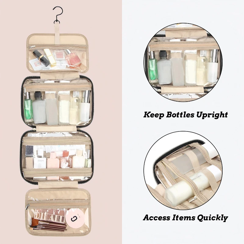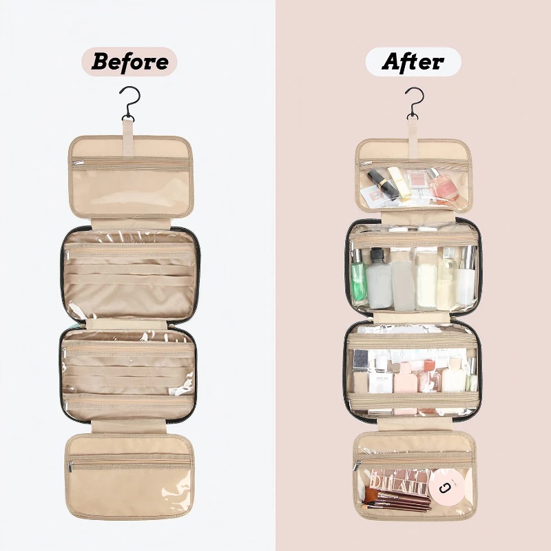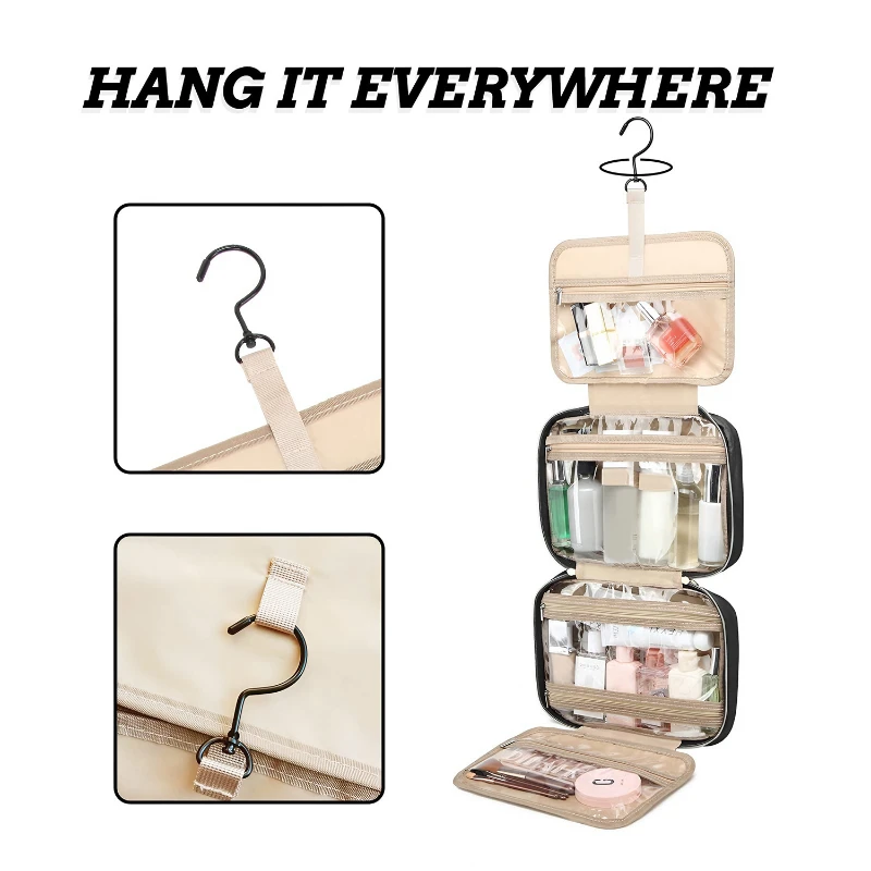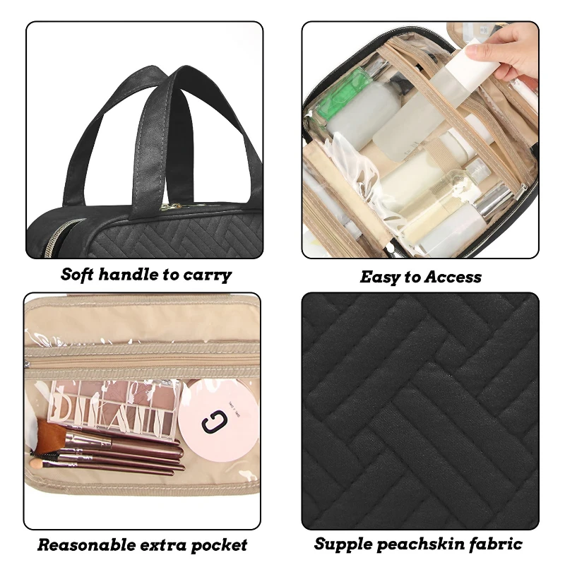 The VersaHang Quilted Travel Organizer is a versatile & stylish solution for keeping your essentials organized on the go. W its quilted black design, this organizer measures 26 cm in width & 18.5 cm in height when closed, & expands to display multiple clear compartments for easy access & visibility. The dimensions convert to about 10.24 inches by 7.28 inches, providing ample space for toiletries, cosmetics, & other travel necessities. It features a durable hook for hanging, offering convenience whether you’re at home or traveling. The organizer folds neatly into a compact form, measuring approximately 11.02 inches by 7.87 inches by 1.18 inches, making it lightweight and portable. It also includes a non-slip mat to keep items secure and a stainless steel zipper for smooth operation.