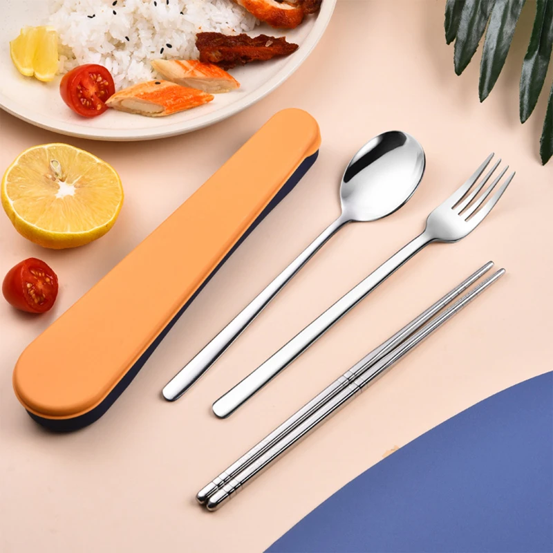 Food grade stainless steel Cutlery flatware set is rust & corrosion resistant, ensuring you will use it for years to come; lightweight and easy to use, dishwasher safe. Comes with 1 Dinner Forks, 1 Tablespoons, 1 Chopsticks, 1 Carrying Case. Perfect for everyday use and lunch.
