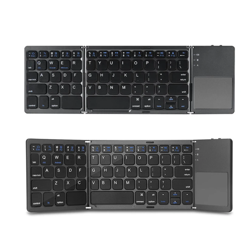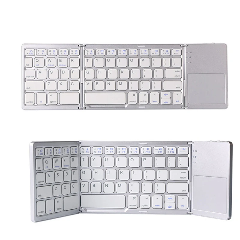 With its innovative tri-fold design, this keyboard can be folded up into a compact size for easy storage and transportation. When unfolded, it reveals a full-size keyboard with soft and responsive keys. Additionally, it features a built-in touchpad, eliminating the need for an extra mouse when working or browsing on your devices. Its rechargeable battery ensures long-lasting usage, and its compatibility with various operating systems makes it suitable for a wide range of devices.