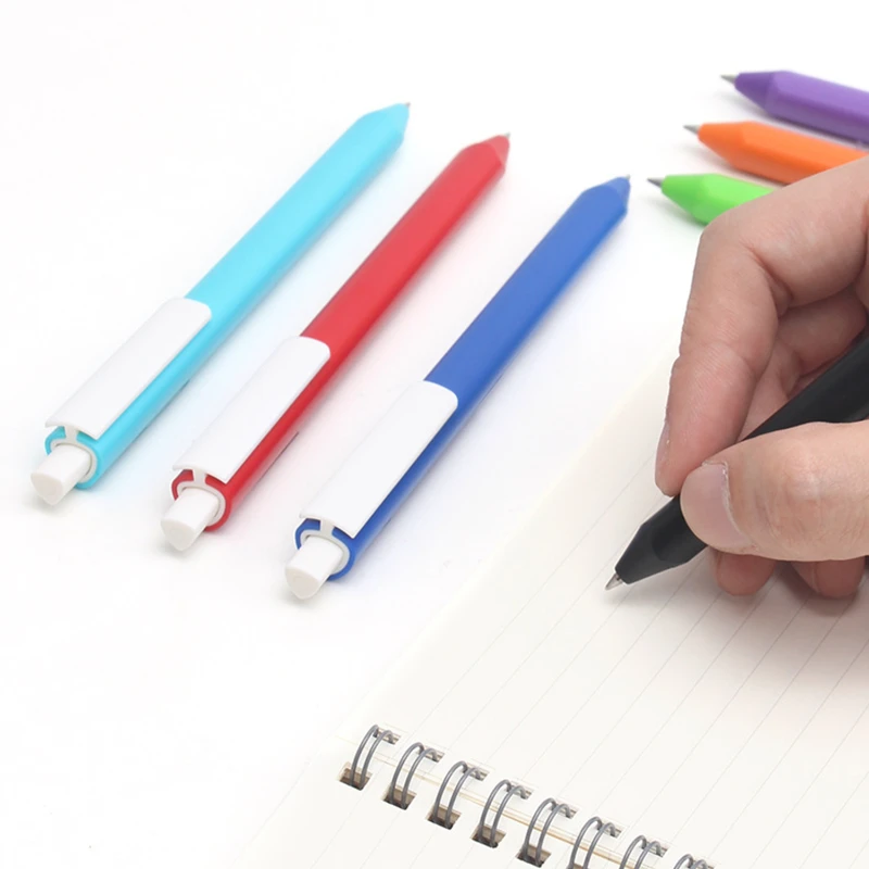 Ergonomic click-action gel pen designed with a triangular barrel to promote proper finger placement and improve writing posture. The anti-roll shape offers better grip control, making it ideal for students, offices, and extended writing sessions. Features smooth, quick-dry 0.5mm black gel ink for clean, precise lines with reduced smudging. Crafted from durable ABS plastic for reliable everyday use. Available in 21 solid and color-accent options, providing flexibility for branding, school programs, and promotional giveaways. A practical writing solution that balances comfort, function, and modern style.