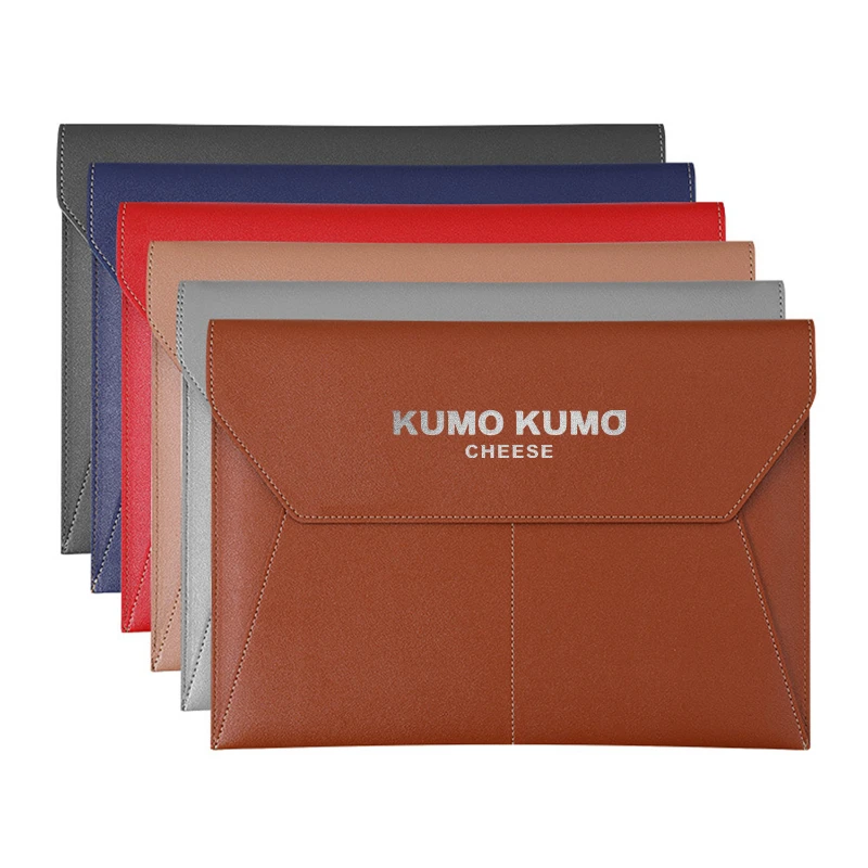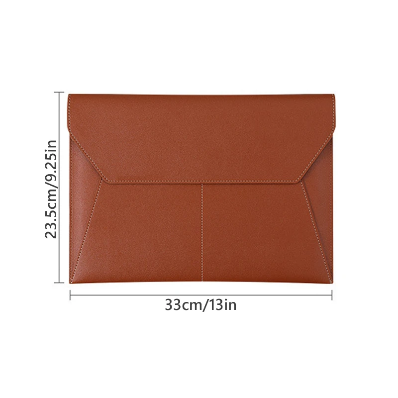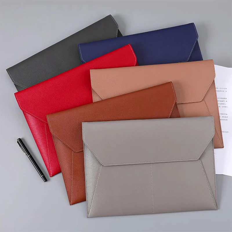This elegant A4 document folder is made of high-quality PU leather, offering a professional look and durable structure for everyday business use. Measuring 13 × 9.25 inches, it features a practical three-pocket design to organize papers, notebooks, pens, and cards neatly. The secure snap closure ensures documents stay in place while maintaining a sleek, modern appearance. Available in six refined colors, it is ideal for executives, students, and conferences, and makes a great corporate gift option.