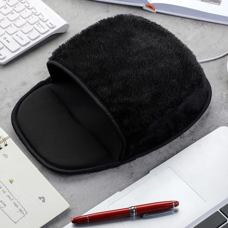 Experience warmth while you work with the USB Hand Warmer Mouse Pad. This innovative desk accessory is designed to provide a snug and warm environment for your hand during those chilly work sessions. Crafted with a plush, black faux fur interior, and a sleek PVC leather base, this mouse pad offers both comfort and stability. It features a built-in USB-powered heating element that gently warms your hand, helping to maintain dexterity and reduce stiffness. Measuring approximately 11.8″ x 8.7″ (30 x 22 cm) and weighing just 160g, this lightweight and portable warmer is perfect for any desktop setup.