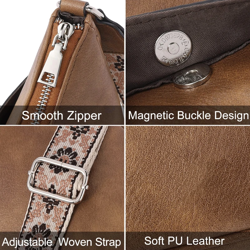 The Vintage Solid Color Crescent Shoulder Bag combines timeless design with modern functionality. Crafted from durable PU leather and polyester, this versatile crossbody bag features an adjustable woven strap, magnetic front pocket, main zipper pocket, and an inner zipper pocket. Measuring 10.03 x 3.14 x 7.87 inches, and weighing 0.7 lbs, it offers ample space for daily essentials such as keys, phone, wallet, and makeup. Perfect for casual outings, travel, and everyday use, this bag is available in various color options to suit any style. The soft leather finish and smooth zipper enhance its sophisticated appeal. Customization options include debossing, silkscreen , printed label, or a metal logo tag.