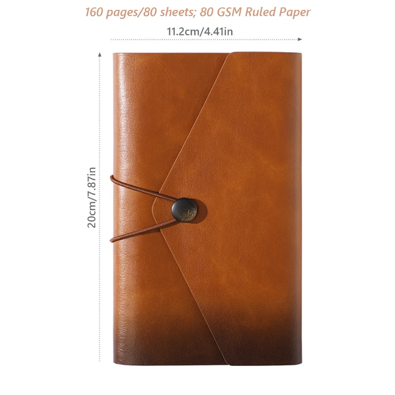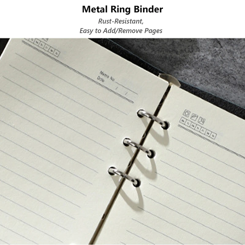 This A6 refillable notebook features a retro-style PU leather cover with a smooth matte finish and secure wrap closure. Inside, it includes 80 sheets (160 pages) of 80 GSM ruled paper, offering a comfortable writing experience for daily notes, journaling, or planning. The durable metal ring binder allows easy addition or removal of pages. Compact and stylish at 4.41 x 7.87 in, it fits easily in bags for travel or meetings. Available in multiple elegant colors, this notebook is ideal for business professionals, students, and gift promotions.