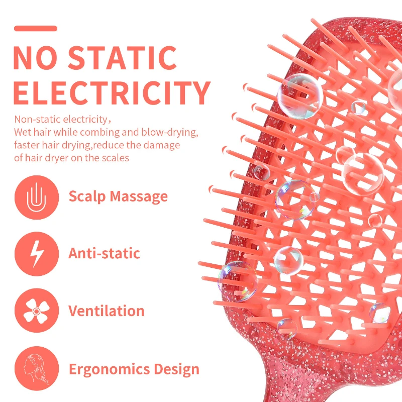 The Vented Detangling Hair Brush is crafted from high-quality PP material, designed for both natural and artificial hair. Measuring 9.37 inches in length and 3.34 inches in width, this brush is lightweight at only 0.15 pounds, ensuring ease of use. Its soft, elastic comb teeth glide smoothly through tangles and knots, reducing breakage and static electricity. The ergonomic design fits comfortably in your hand, providing a gentle scalp massage while promoting healthier hair. Ideal for use on wet or dry hair, this brush speeds up drying time with its ventilated structure. Please note: the standard package for single item is box, but you can opt for individual poly bag package if needed.